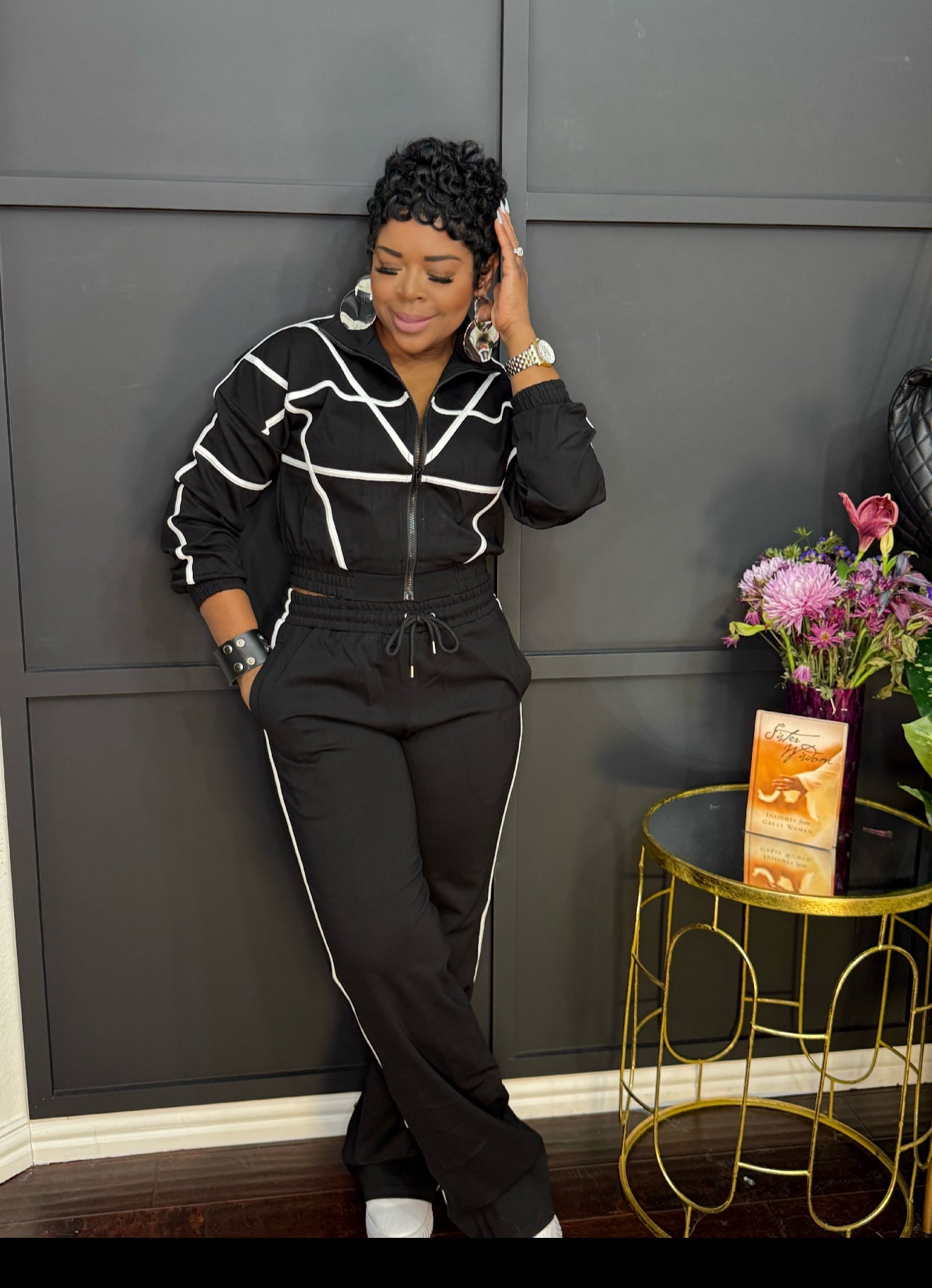 Indulge in style with our Just Hanging Tracksuit. Made with amazing quality, this tracksuit can be dressed up or down in a sassy manner. Elevate your fashion game and make a statement with this luxurious and versatile piece. Perfect for any occasion!