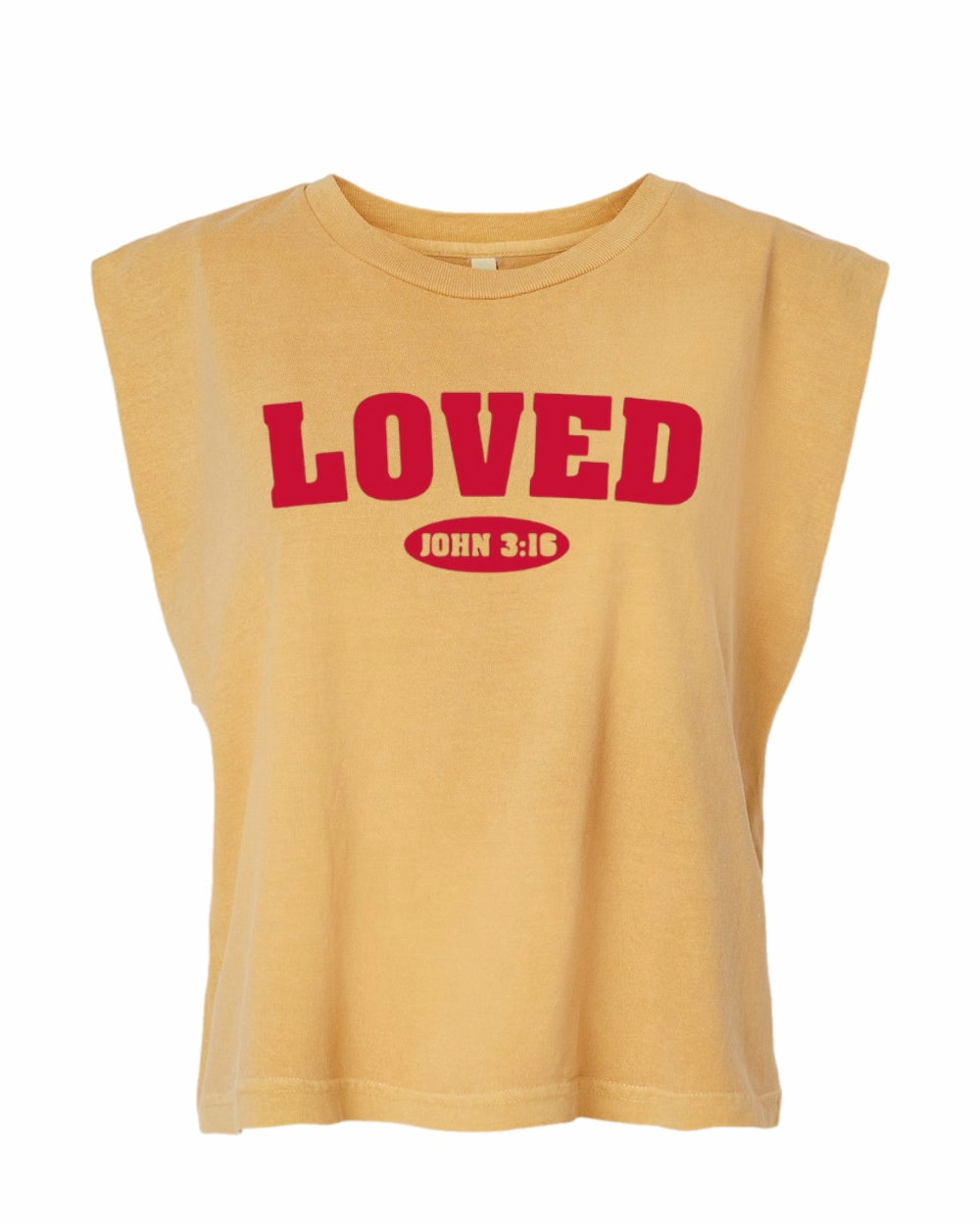 Introducing the Loved Muscle Tank Tee from our exclusive I Am Collection. This cropped muscle tank combines comfort with confidence, featuring a flattering silhouette perfect for layering or wearing solo. Crafted for everyday wear, it's an essential addition to any wardrobe. Celebrate self-affirmation with style—because you are enough.
